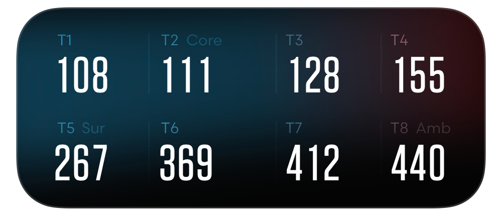 ...or view all 8 sensors to see exactly how heat moves through your food from the surface to the core.